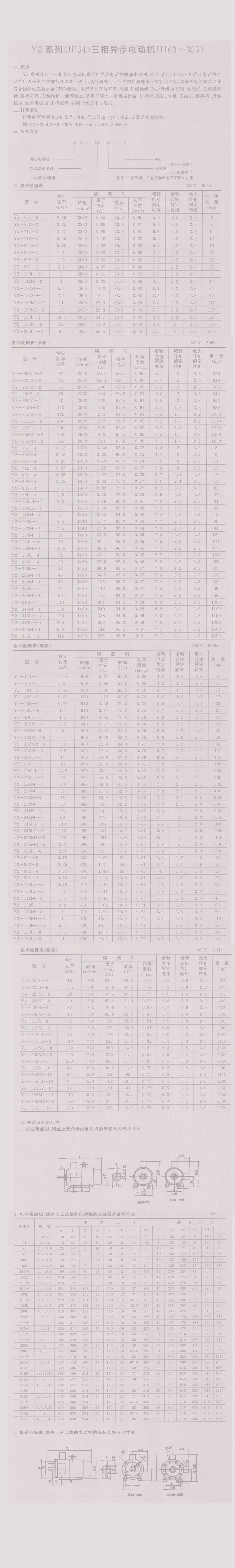 Y2系列(380V IP54)三相異步電動機(h63-355)